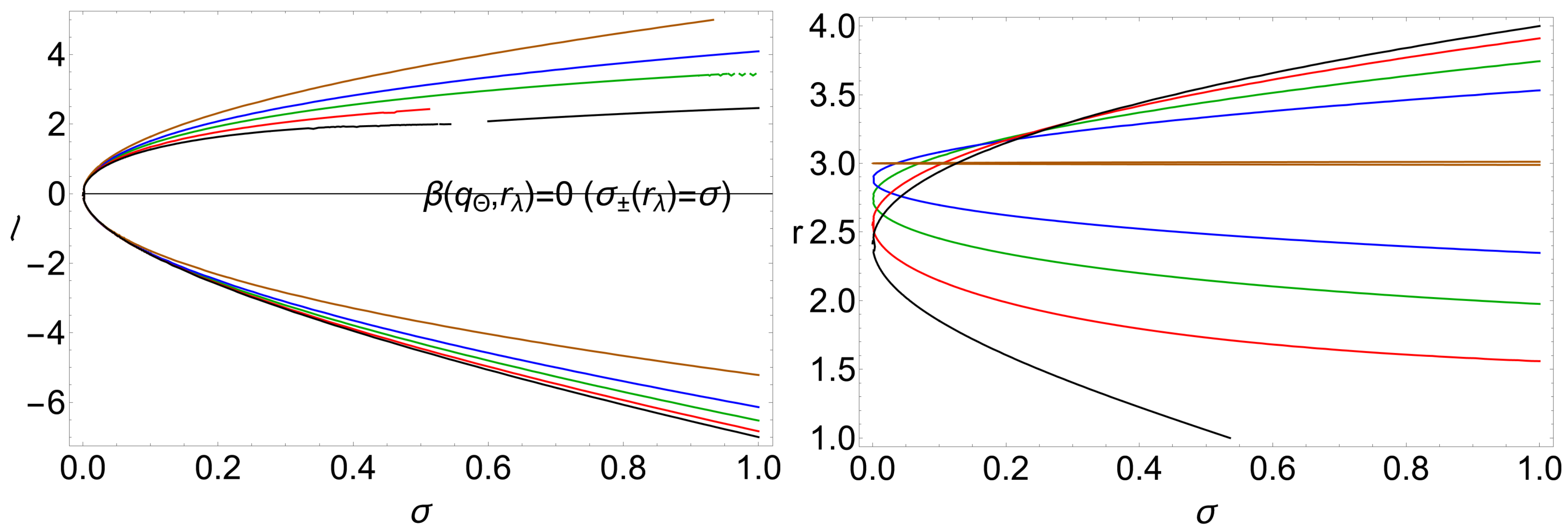 - Pugliese, D.; Stuchlík, Z. Proto-jet configurations in RADs orbiting a Kerr SMBH: Symmetries and limiting surfaces. Class. Quant. Grav. 2018, 35, 105005. [Google Scholar] [CrossRef]