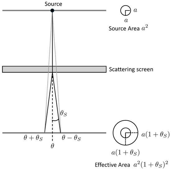 An example of scattering. The source is seen through a scattering screen, which produces a scatter-broadened image. The apparent dimensions of the source are symmetrically stretched by a factor of .