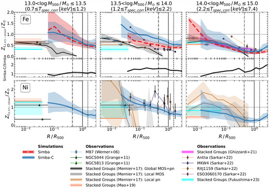 | 17 | Note that the innermost radial bin of each group in the Sarkar et al. [18] sample includes all data from the center of the group out to the first bin edge, which tend to be a fair bit larger than the first bin edges of the simulated and other observed profiles. In this way, there are contributions to the inner Sarkar et al. [18] radial bins from the core, where the abundances tend to be higher, but, due to the log scaling of the radial axes, these values then appear at larger radii. |