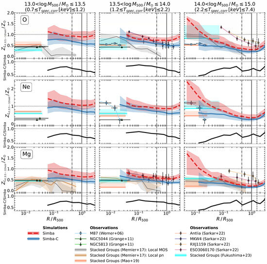 - Fukushima, K.; Kobayashi, S.B.; Matsushita, K. O, Ne, Mg, and Fe Abundances in Hot X-Ray-emitting Halos of Galaxy Clusters, Groups, and Giant Early-type Galaxies with XMM-Newton RGS Spectroscopy. Astrophys. J. 2023, 953, 112. [Google Scholar] [CrossRef]