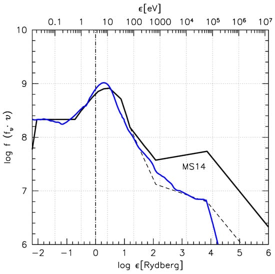 The optical singly-ionized iron emission is remarkably self-similar among type-1 quasars [], since significant Feii emission requires very similar conditions: in the photoionization context, a partially ionized zone (PIZ) within the emitting gas with electron temperature K [,,,], where Fe+ is the dominant ionization stage of iron (Figure 3). The relative intensity with respect to H is instead varying by a large factor along the MS, ranging from being undetectable to becoming so prominent that it overwhelms the emission lines within the H spectral range [,,]. The selection criterion [,,]