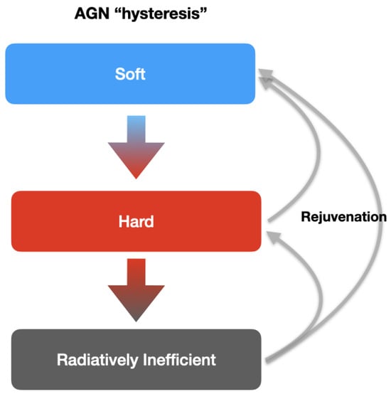 - Maccarone, T.J. On the evolution of the compact jet and the nature of X-ray states in black hole binaries. Astron. Astrophys. 2003, 409, 697–706. [Google Scholar] [CrossRef]