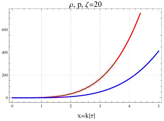 are the vacuum part, and the remaining terms are the particle part. In this paper, we consider only the stress tensor in the Bunch–Davies vacuum state. The properties of vacuum states in de Sitter space were discussed in Refs. [,]. Hereafter, we focus the vacuum stress tensor, which contains UV divergences. By their structure, and are twice that of the conformally coupling massive scalar field [], due to the mass term. It is checked that the transverse spectral stress tensor respects the covariant conservation