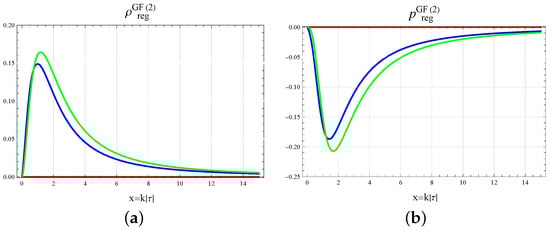 (2) The 2nd-order regularization of the longitudinal stress tensor: The unregularized longitudinal stress tensor (80) and (81) resemble neither the form of a minimally nor a conformally coupling scalar field []. By the minimal subtraction rule, we regularize the longitudinal stress tensor by trial and error. The high-k expansions are