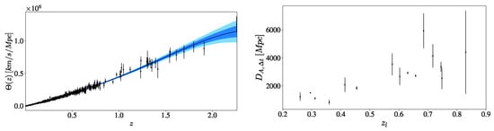 The primary method for constraining the Hubble constant is based on the effectiveness of the cosmic distance duality relation (CDDR), which is expressed as . In this equation, represents the luminosity distance, denotes the angular diameter distance, and z is the redshift. This relationship holds when the number of photons is conserved along null geodesics in a Riemannian spacetime between the observer and the source. Recent technological advancements have provided numerous observational data that enable a detailed examination of any potential deviations from the CDDR. However, no strong statistical evidence for such deviations has been identified up to this moment (see [46,47,48,49,50,51] and the references therein). The broad applicability of this relation emphasizes its fundamental significance in observational cosmology, and any violation of it could indicate new physics or systematic errors in the observational data [52,53]. Following the philosophical approach outlined in [54], one can express CDDR further as