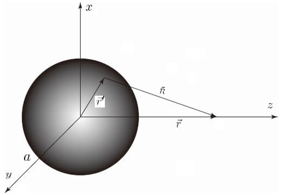 Secondly, we consider a solid sphere of mass M and radius a spinning with angular velocity (), as shown in Figure 1. Note that produces