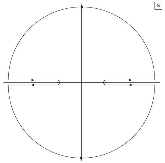 The calculation of light by light scattering is performed by use of a forward scattering dispersion relation. as done by Schwinger [14]. The analytic structure of the forward amplitude is shown in Figure 2, which indicates the presence of s- and u-channel cuts from to and from to . Using the contour shown in the figure, we can then reproduce the Euler–Heisenberg forms.