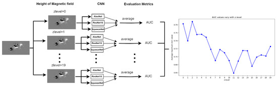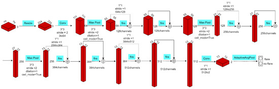 Building upon this foundation, we implemented three widely adopted CNN architectures—AlexNet [30], ResNet-18 [31], and SqueezeNet [32]—to systematically evaluate how magnetic field height variations influence model performance. Using the AUC metric for quantitative assessment, we conducted comprehensive testing across multiple atmospheric heights. This paper not only reveals previously unexplored relationships between magnetic field altitude and flare prediction accuracy but also provides actionable insights for optimizing deep learning applications in solar activity forecasting.