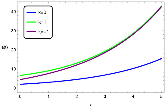 where the scale factor must be nonvanishing. If we consider a flat universe, Equation (31) can be written as