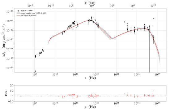 - Aliu, E.; Archambault, S.; Arlen, T.; Aune, T.; Beilicke, M.; Benbow, W.; Boettcher, M.; Bouvier, A.; Bugaev, V.; Cannon, A.; et al. Multiwavelength observations of the AGN 1ES 0414+ 009 with VERITAS, Fermi-LAT, Swift-XRT, and MDM. Astrophys. J. 2012, 755, 118. [Google Scholar] [CrossRef]