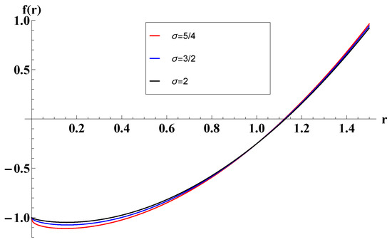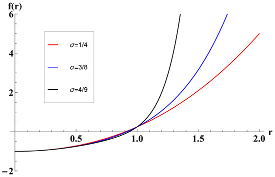 In the last range for , we have s = −1 and . In this scope, we also cannot extend the Manifold beyond , as a curvature singularity is present at such a point. The asymptotic regions of f reads as follows: