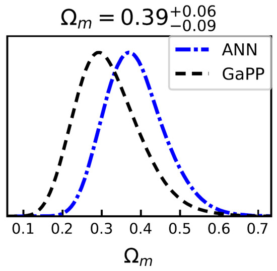 Constraints on for the flat CDM model using 140 GRBs () by ANN and GaPP methods, with fixed at 70 km/s/Mpc.