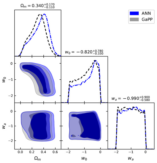 Constraints on , , and for the flat CPL model using 140 GRBs () by ANN and GaPP methods, with fixed at 70 km/s/Mpc.