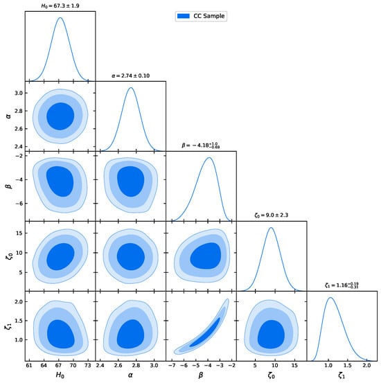 The contour plot for the proposed model, based on the free parameters within the confidence intervals, is constructed using the CC dataset.