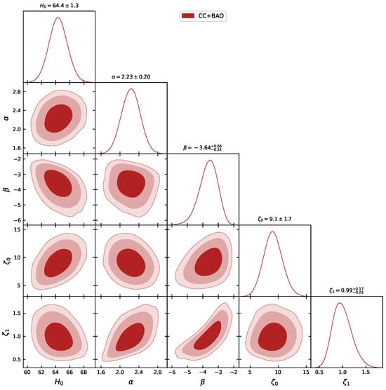 The contour plot for the proposed model, based on the free parameters within the confidence intervals, is constructed using the CC + BAO dataset.