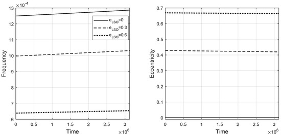 - Peters, P.C.; Mathews, J. Gravitational Radiation from Point Masses in a Keplerian Orbit. Phys. Rev. 1963, 131, 435–440. [Google Scholar] [CrossRef]
