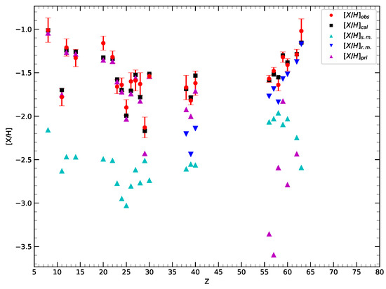 - Sneden, C.; Cowan, J.J.; Lawler, J.E.; Ivans, I.I.; Burles, S.; Beers, T.C.; Primas, F.; Hill, V.; Truran, J.W.; Fuller, G.M.; et al. The extremely metal-poor, neutron capture-rich star CS 22892-052: A comprehensive abundance analysis. Astrophys. J. 2003, 591, 936. [Google Scholar] [CrossRef]