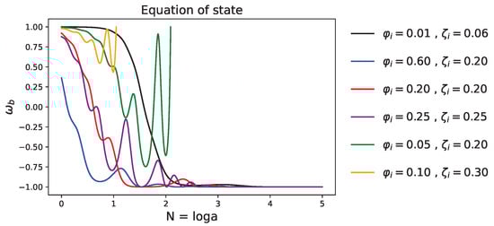 In this case only the critical points identified at infinity exist. This case is well understood from the work in []. Indeed, when is sufficiently large compared to , the system reduces approximately to that in [], but with characteristic modulations in the trajectories and EoS. Since we wish to confirm the phenomenologically relevant choices made in [] via our dynamical system analysis, we set: