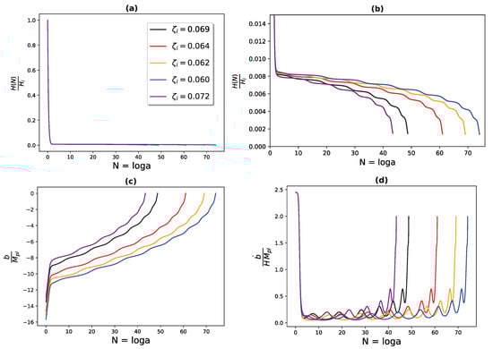 Before proceeding with the solutions of the dynamical systems that correspond to the Equations (19)–(21), it is important to make come comments regarding the (approximate) mapping of the gravitational anomaly condensate-induced inflationary scenario of [,], within the framework of CS gravity [], onto an axion-like system with potentials of the form (24). An important feature of such a CS-gravity model is a linear coupling of the axion to the gravitational CS term, which, upon condensation of the anomaly terms, induced by primordial GWs, leads to an axion system with an (approximately) linear potential, plus periodic modulations, of the form (24).