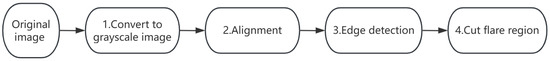 - Use the Canny edge detection algorithm [21] and the Hough Transform algorithm [22] to identify the solar disk and remove the non-solar parts from the images.