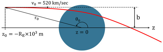 Figure 2. According to these formulations, for particles skimming Earth—i.e., those with trajectories outside its surface—the magnification is directly proportional to the impact parameter