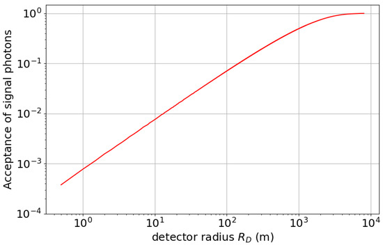 The effect of Earth’s magnetic field via direct coupling to ALPs is expected to be negligibly small due to the low conversion probability for a coupling strength GeV−1, with T and . Unless the conversion probability approaches unity, the loss of the ALP flux cannot become a practical problem. On the other hand, the effect of charged particles near the detection region in the Van Allen belts may constitute a background source for the photon counter if the space probe is located within the belts. However, since the optimum detection position, m, from Earth’s center is much further than the maximum extent of the belts, m, this effect is also expected to be strongly suppressed.