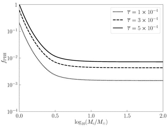 Then, substituting in Equation (9), in Equation (10), and in Equation (12) into Equation (11), we obtain the lensing optical depth for the monochromatic PBH mass function as