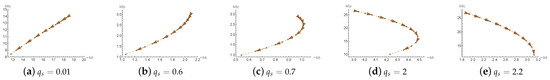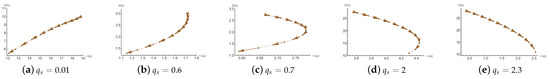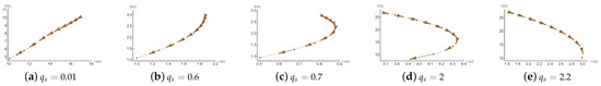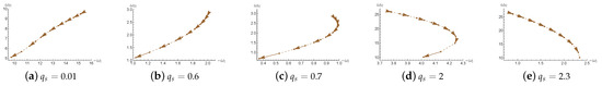 When z is small (e.g., and ), both and decrease as q increases, indicating a reduction in the oscillation frequency and a slower decay rate—that is, the perturbations last longer. For intermediate values such as and 2, exhibits non-monotonic behavior: it first increases and then decreases, suggesting a shift in damping characteristics at a certain threshold. When , the trend is completely reversed— increases monotonically with b, implying that the perturbations decay more rapidly as the black hole charge increases. These results indicate that the Lifshitz exponent z plays a crucial role in determining the stability of the black hole, governing whether the perturbations tend to persist or dissipate quickly.