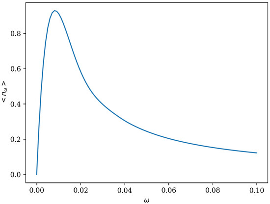 Plot of the average particle number density for mode fields in 3+1 dimensions versus the frequency , from 0 to 0.1. This numerical solution is made using an infrared cutoff of and taking .