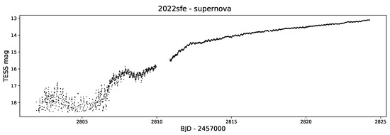 Due to its design, TESS is not the perfect instrument to follow up supernovae because of the long duration of the decline, and the necessity of multicolour follow-up measurements. However, thanks to its survey characteristic, TESS is very useful in observing the initial brightening phase right from the beginning. One such example is shown in Figure 9.