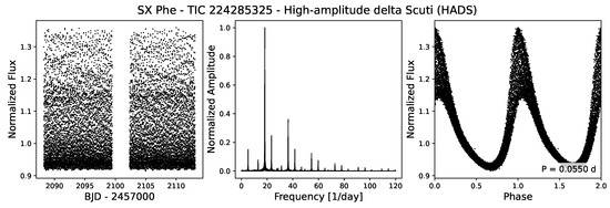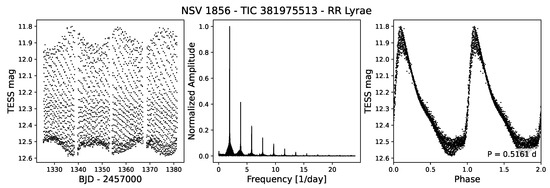 TESS data has several advantages, but also disadvantages over Kepler and K2 in studying RR Lyrae stars. The advantages are: higher cadence, as TESS observes later sectors with 10 min resolution, which improves frequency resolution and decreases phase smearing; broader sky coverage enables selection from a larger sample and permits easier follow-up observations with smaller ground-based telescopes limited to brighter targets; combining accurate TESS data with homogeneous parallax and therefore absolute brightness and colour data from Gaia Early Data Release 3 [47] offers us the best photometric classification scheme for classical pulsators [48]. Some of the disadvantages are: less accuracy due to the smaller telescope aperture; a shorter observational duration of TESS limits the ability to detect long-term modulations, such as the Blazhko effect, which may require extended monitoring; lower angular resolution makes it harder to separate variations from neighbouring stars. A representative TESS light curve of a fundamental-mode RR Lyrae star, TIC 381975513 is shown in Figure 10.