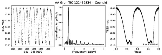 - Plachy, E.; Pál, A.; Bódi, A.; Szabó, P.; Molnár, L.; Szabados, L.; Benkő, J.M.; Anderson, R.I.; Bellinger, E.P.; Bhardwaj, A.; et al. TESS Observations of Cepheid Stars: First Light Results. Astrophys. J. Suppl. Ser. 2021, 253, 11. [Google Scholar] [CrossRef]