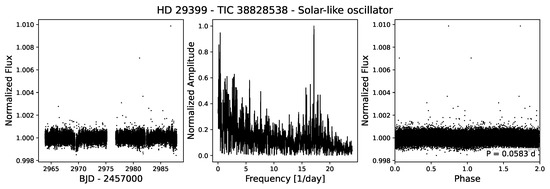 - Hatt, E.; Nielsen, M.B.; Chaplin, W.J.; Ball, W.H.; Davies, G.R.; Bedding, T.R.; Buzasi, D.L.; Chontos, A.; Huber, D.; Kayhan, C.; et al. Catalogue of solar-like oscillators observed by TESS in 120-s and 20-s cadence. Astron. Astrophys. 2023, 669, A67. [Google Scholar] [CrossRef]