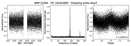 - Romero, A.D.; Kepler, S.O.; Oliveira da Rosa, G.; Hermes, J.J. Thirty-two New Bright ZZ Ceti Stars from TESS: Adding Cycles 4 and 5. Astrophys. J. 2025, 984, 112. [Google Scholar] [CrossRef]