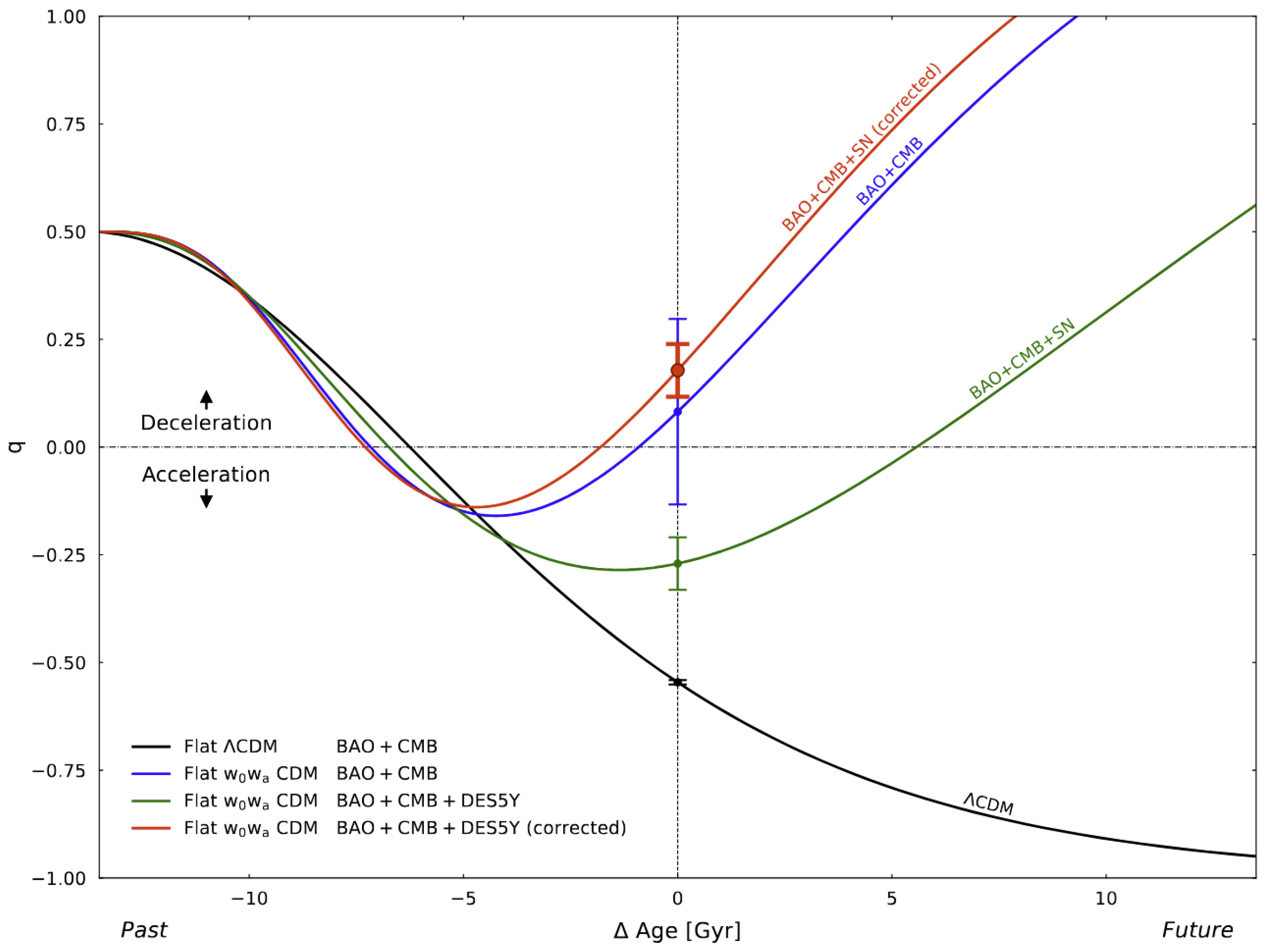 - Son, J.; Lee, Y.-W.; Chung, C.; Park, S.; Cho, H. Strong progenitor age bias in supernova cosmology—II. Alignment with DESI BAO and signs of a non-accelerating universe. Mon. Not. R. Astron. Soc. 2025, 544, 975–987. [Google Scholar] [CrossRef]