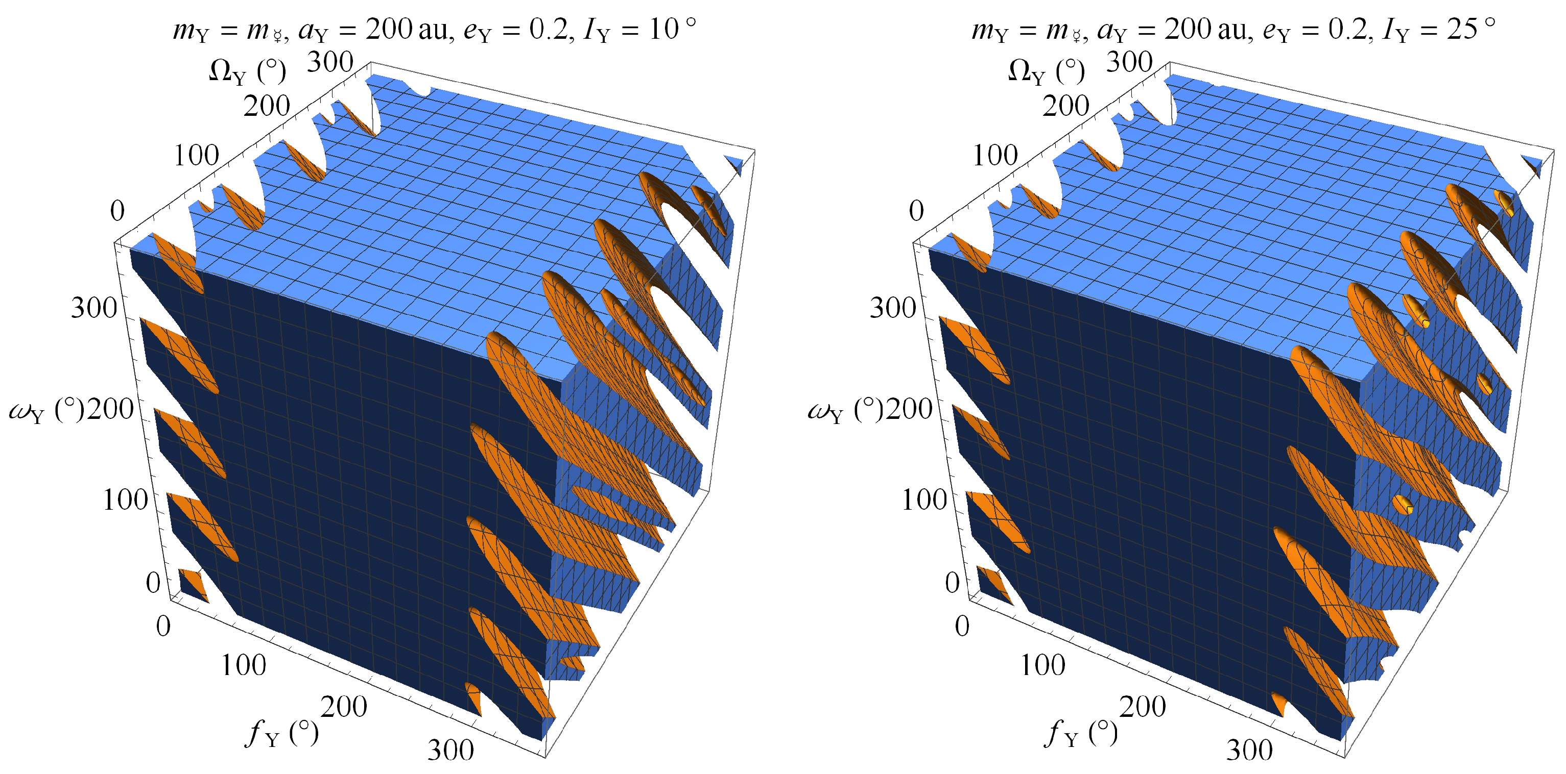 , is aligned with the orbital angular momentum. Finally, , lying in the orbital plane, is defined such that the relation holds. The unit vector of the position vector of the distant perturber entering Equations (9)–(11) can be expressed as3. Using the Orbital Precessions of a Disturbed Planet to Constrain the Position of a Distant Perturber