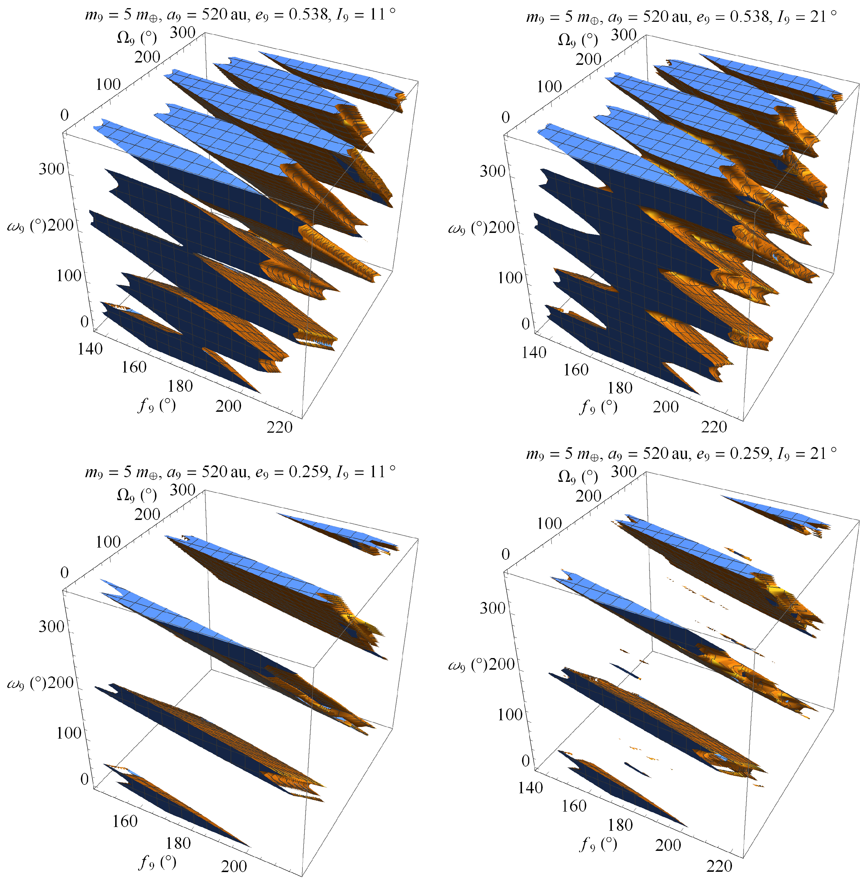 - Brown, M.E.; Batygin, K. The Orbit of Planet Nine. Astron. J. 2021, 162, 219. [Google Scholar] [CrossRef]
