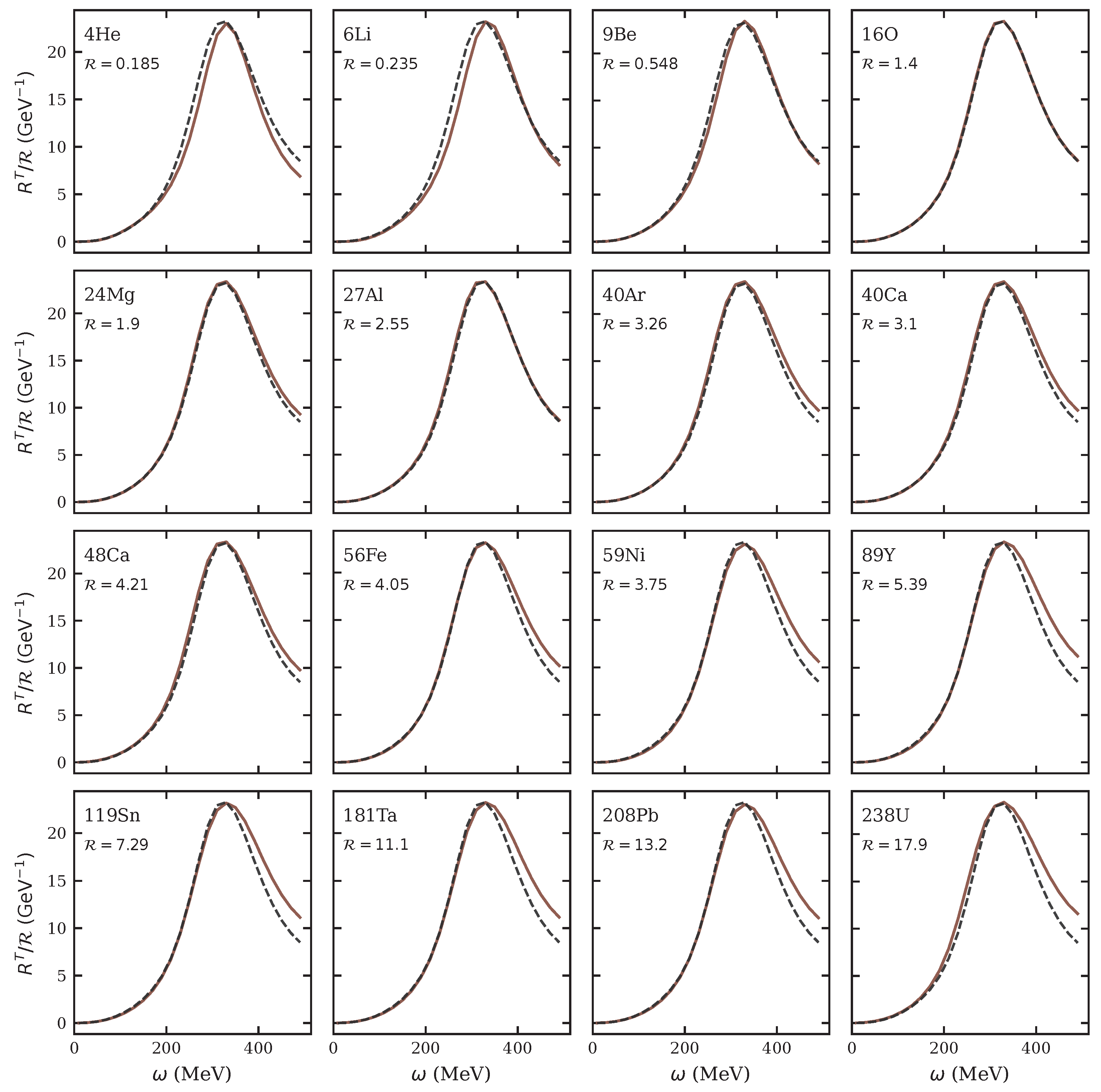 40Ca), significant deviations emerge for heavier systems such as lead or uranium, indicating that additional sources of nuclear dependence must be taken into account. Motivated by these observations, we decompose the nuclear response in Equation (