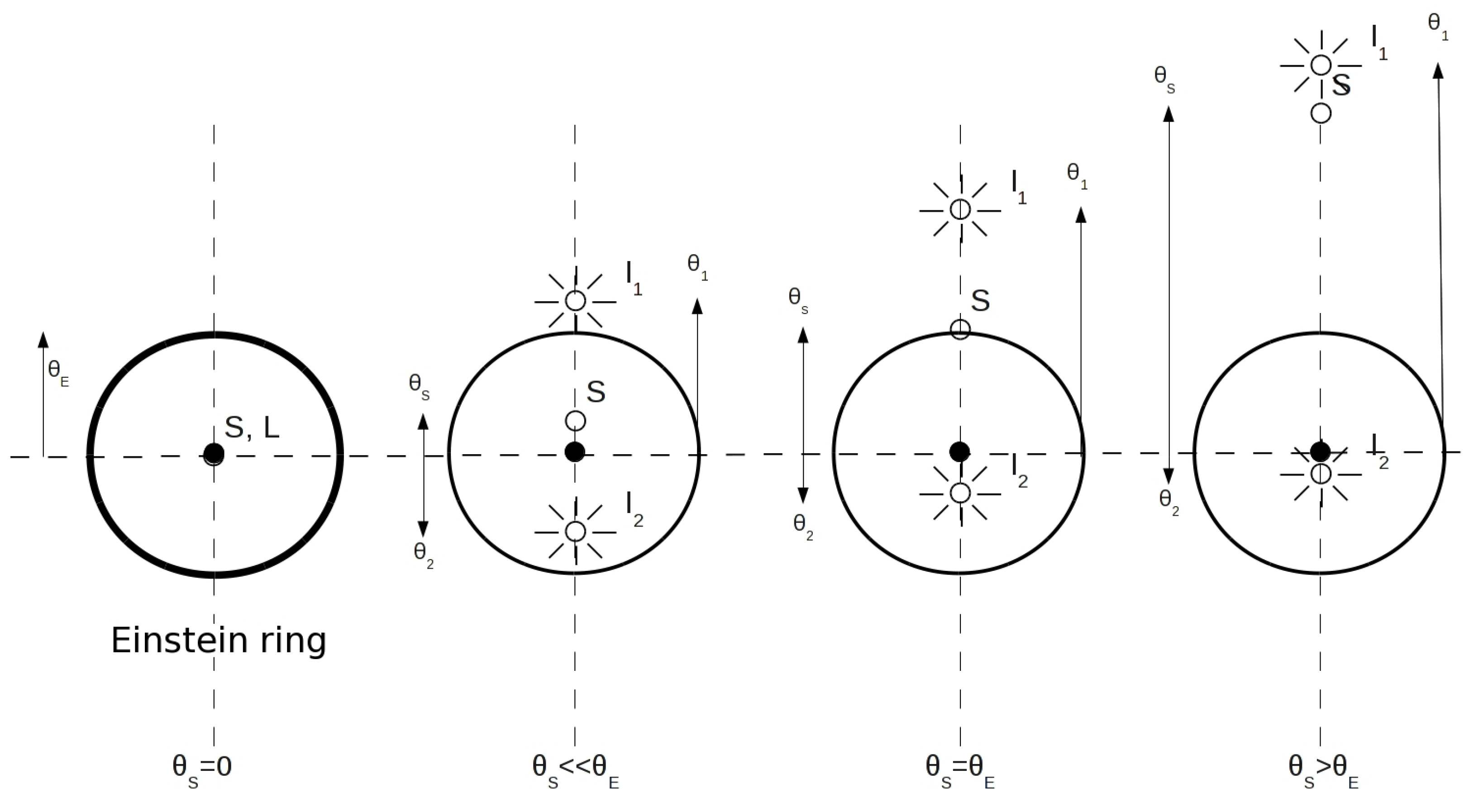 In 1911, while he was still involved in the development of the general theory of relativity (subsequently published in 1916), Einstein made the first calculation of light deflection by the Sun [1]. He correctly understood that a massive body may act as a gravitational lens deflecting light rays passing close to the body surface. However, his calculation, based on Newtonian mechanics, gave a deflection angle wrong by a factor of two. On 14 October 1913, Einstein wrote to Hale, the renowned astronomer, inquiring whether it was possible to measure a deflection angle of about 0.84″ toward the Sun. The answer was negative, but Einstein did not give up, and when, in 1915, he made the calculation again using the general theory of relativity, he found the right value (where is the Schwarzschild radius and b is the light rays’ impact parameter) that corresponds to an angle of about 1.75″ in the case of the Sun. That result was resoundingly confirmed during the Solar eclipse of 1919 [2].