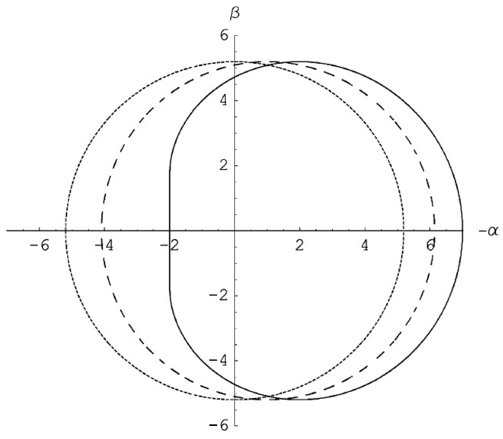 Then, for , the ellipse becomes a circle with radius , while it degenerates into a straight line of length for approaching zero. Note also that Equation (16) implies: