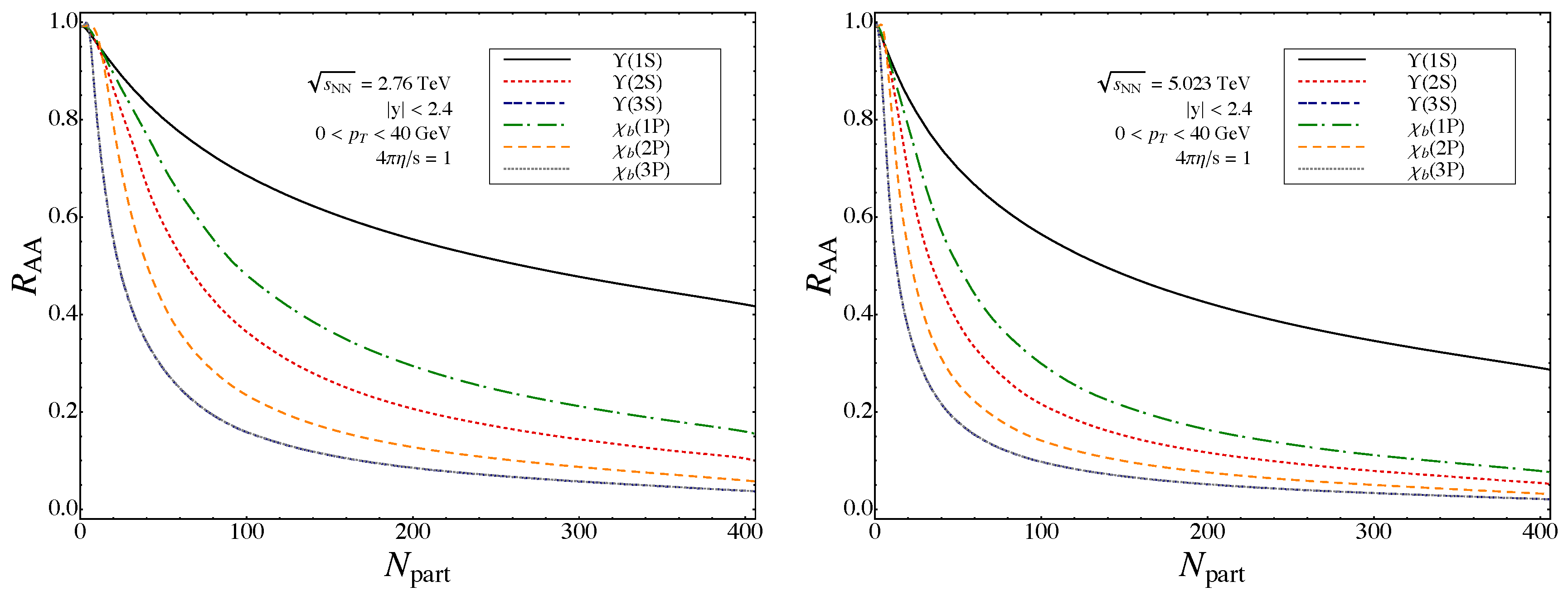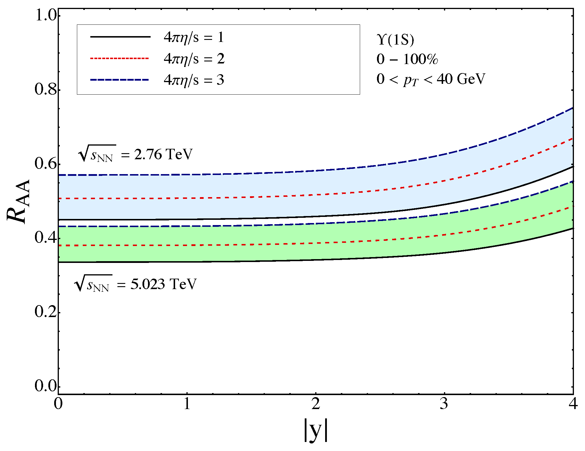 - Nendzig, F.; Wolschin, G. Y suppression in PbPb collisions at energies available at the CERN Large Hadron Collider. Phys. Rev. C 2013, 87, 024911. [Google Scholar] [CrossRef]