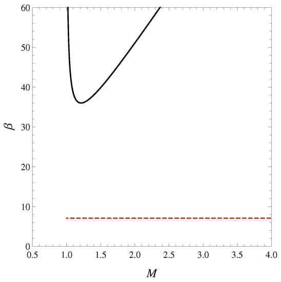 The canonical ensemble depicts the system of a black hole in equilibrium with an infinite reservoir of thermal radiation at constant temperature. The Massieu function in this case is , and the control parameters are β and J. The pair of conjugate variables are the functions at fixed J and at fixed β. The stability curve at constant J for the standard case can be obtained by clockwise rotating Figure 4 with . The stability curve at fixed β in the standard treatment is plotted in Figure 6. In this case, the stability curve exhibits a turning point where a stability change occurs in the system. Based on these observations, Kaburaki et al. [27] concluded that fast rotation can stabilize black holes in a heat bath.