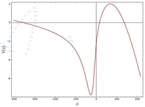 This potential and its first and second derivatives with respect to the scalar field will help in constructing the slow-roll parameters from Section 5. Figure 2 below shows how the potential depends on the scalar field .