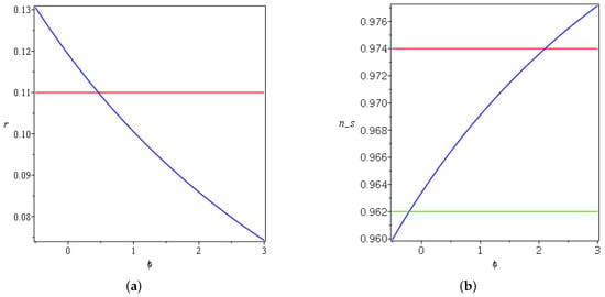 where here, indicates differentiation with respect to the scalar field . Then we can define two potential slow-roll parameters and [27,28]: