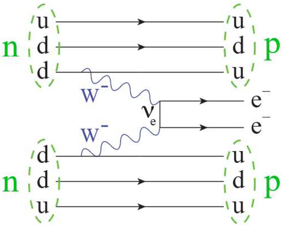 As stated, one critical constraint for Equation (1) to be valid, is that the neutrinos must be of the Dirac-type, not Majorana-type. If neutrinos were Majorana, then neutrinoless double beta decay, n + n −> p + p + e + e (Figure 1) would occur.