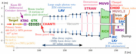 - NA62 Collaboration. The beam and detector of the NA62 experiment at CERN. J. Instrum. 2017, 12, 05025. [Google Scholar]