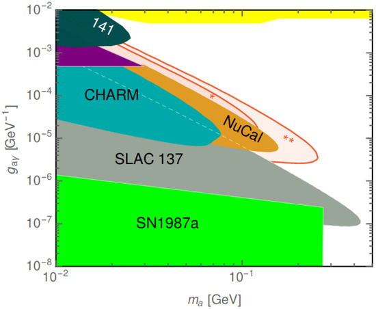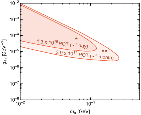 - Döbrich, B.; Jaeckel, J.; Kahlhoefer, F.; Ringwald, A.; Schmidt-Hoberg, K. ALPtraum: ALP production in proton beam dump experiments. J. High Energy Phys. 2016, 2016, 018. [Google Scholar] [CrossRef]