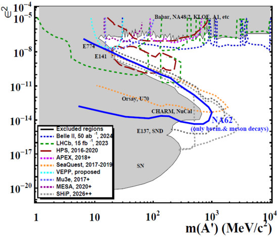 Under the zero-background hypothesis, POT are needed to evaluate the expected NA62 sensitivity to DP to visible decays in a region that has not been excluded by past experiments, as shown in Figure 7.