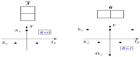 where when the bound state corresponds to a heavy quark () and when the bound state corresponds to a heavy antiquark (). Hence for a bound heavy quark the lowest lying representations are the anti-triplet and the sextet . Obviously, these representations describe the -diquark content of the heavy baryons. The particle content of the representations is displayed in Figure 4.