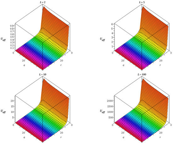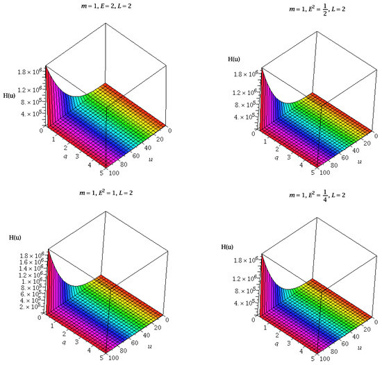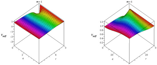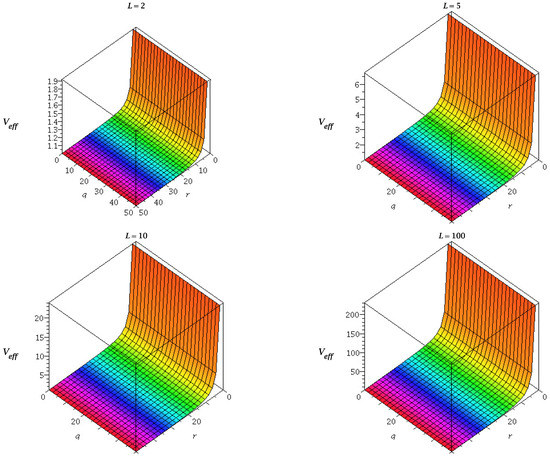 Similarly, the geodesic motion of neutral test particles can be studied by using the effective potential diagram which is plotted in Figure 4.